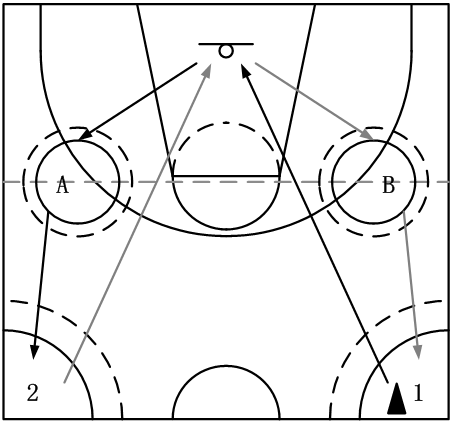 方法:(在篮球半场按图示进行)