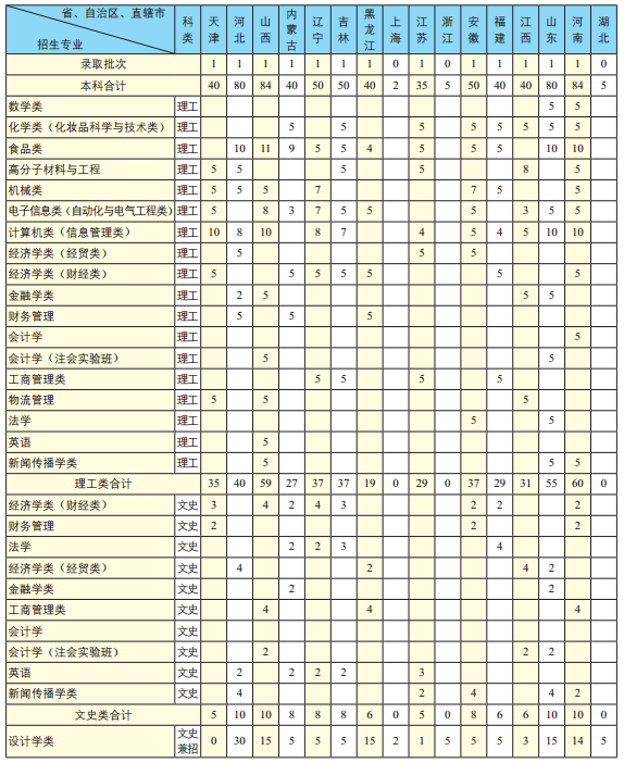 注:1. 北京一批各专业预留 20% 左右的计划招收非第一志愿高分考生,要求一批一志愿报考学校为“211”院校。