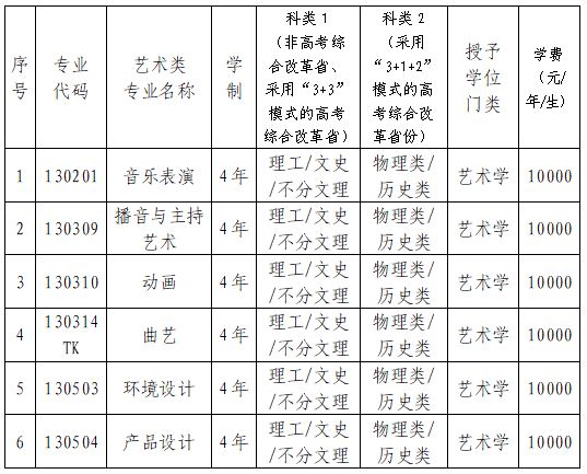 学费按照省物价部门批准的标准向学生收取,艺术类各专业收费标准已在“三、艺术类专业设置说明”表中具体列明。