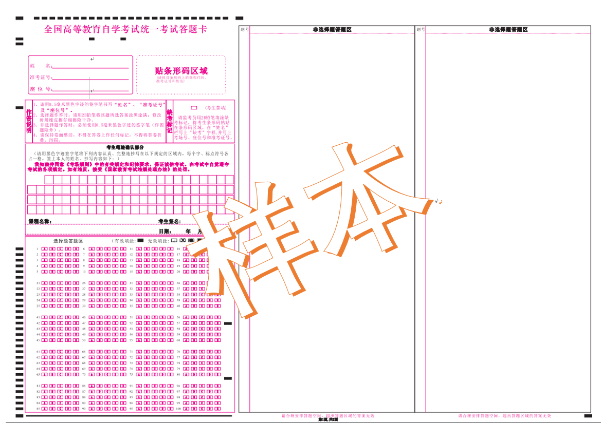 一、部分课程沿用传统试卷(科目清单附件1),考生直接在试卷上填写个人信息及进行作答,同时需要填写笔迹信息采集卡。